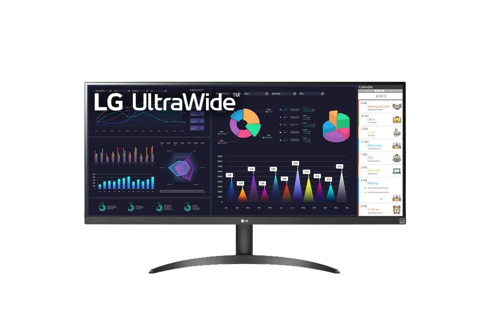 Monitores Home & WorkMonitor LG 34WQ500-B con panel IPS UltraWide Full HD de 34″. Alta velocidad de actualización de 100 Hz, imagen clara y fluida